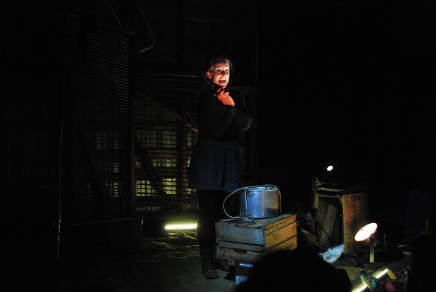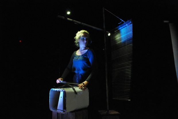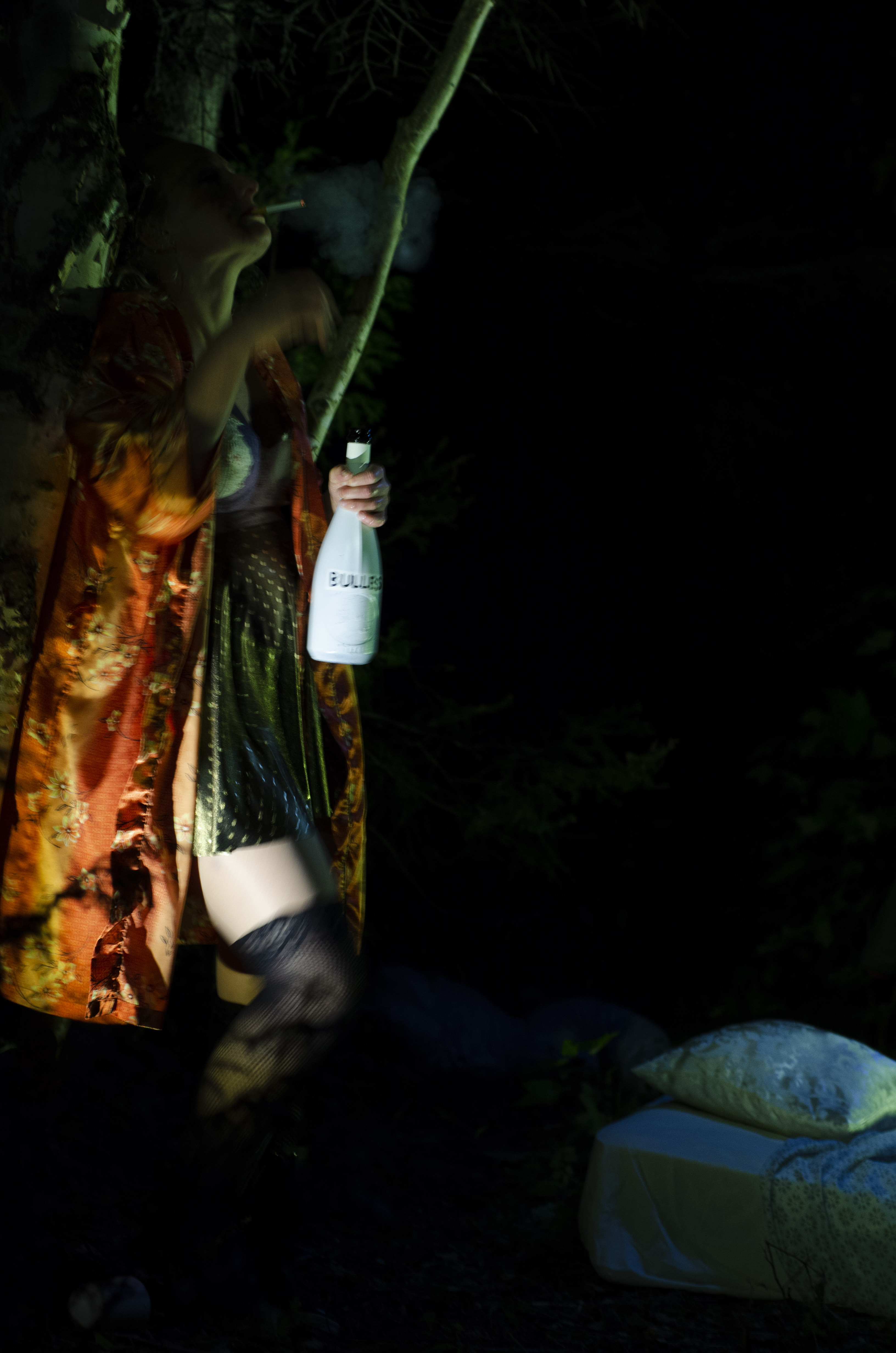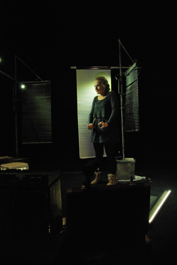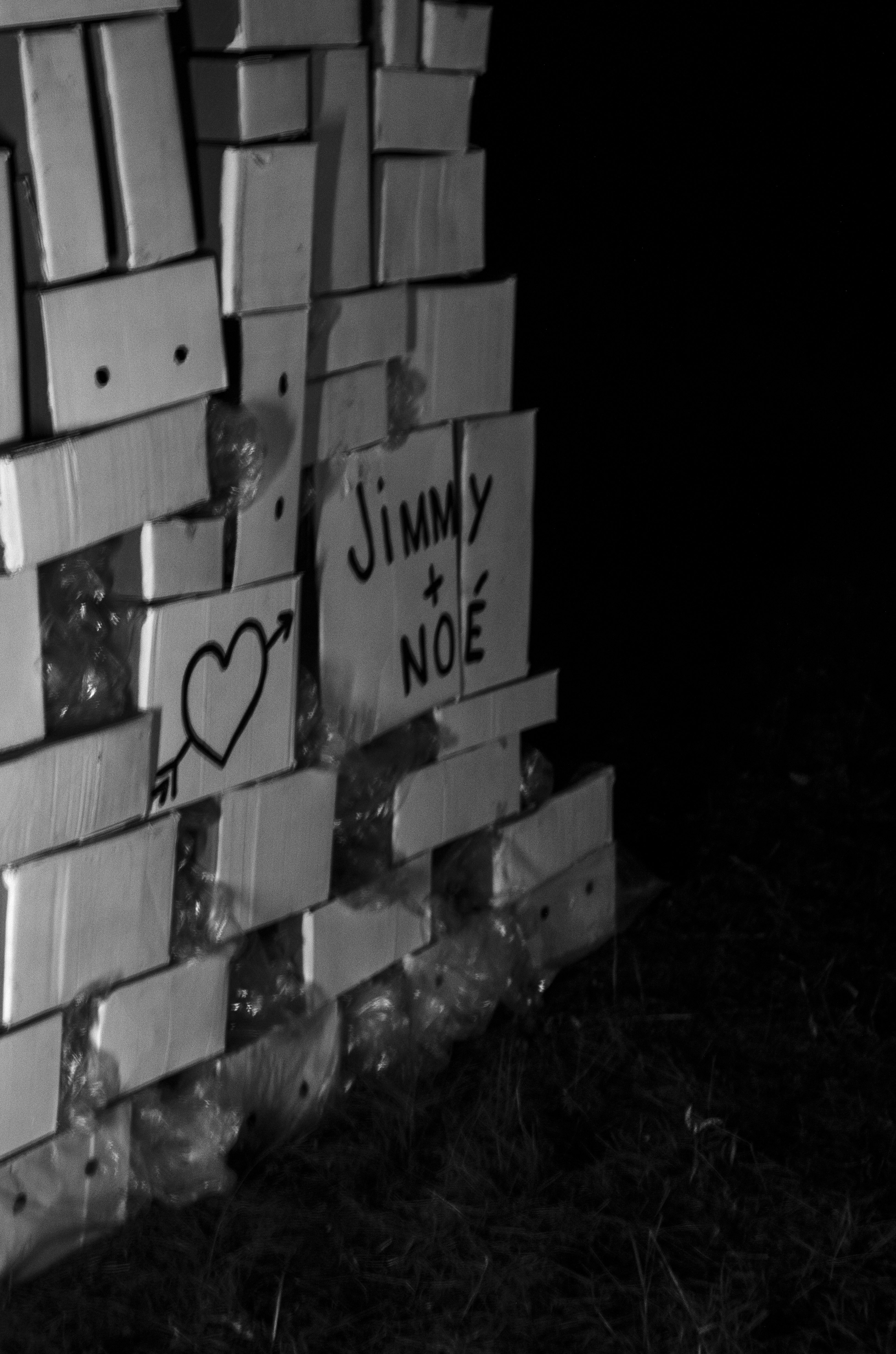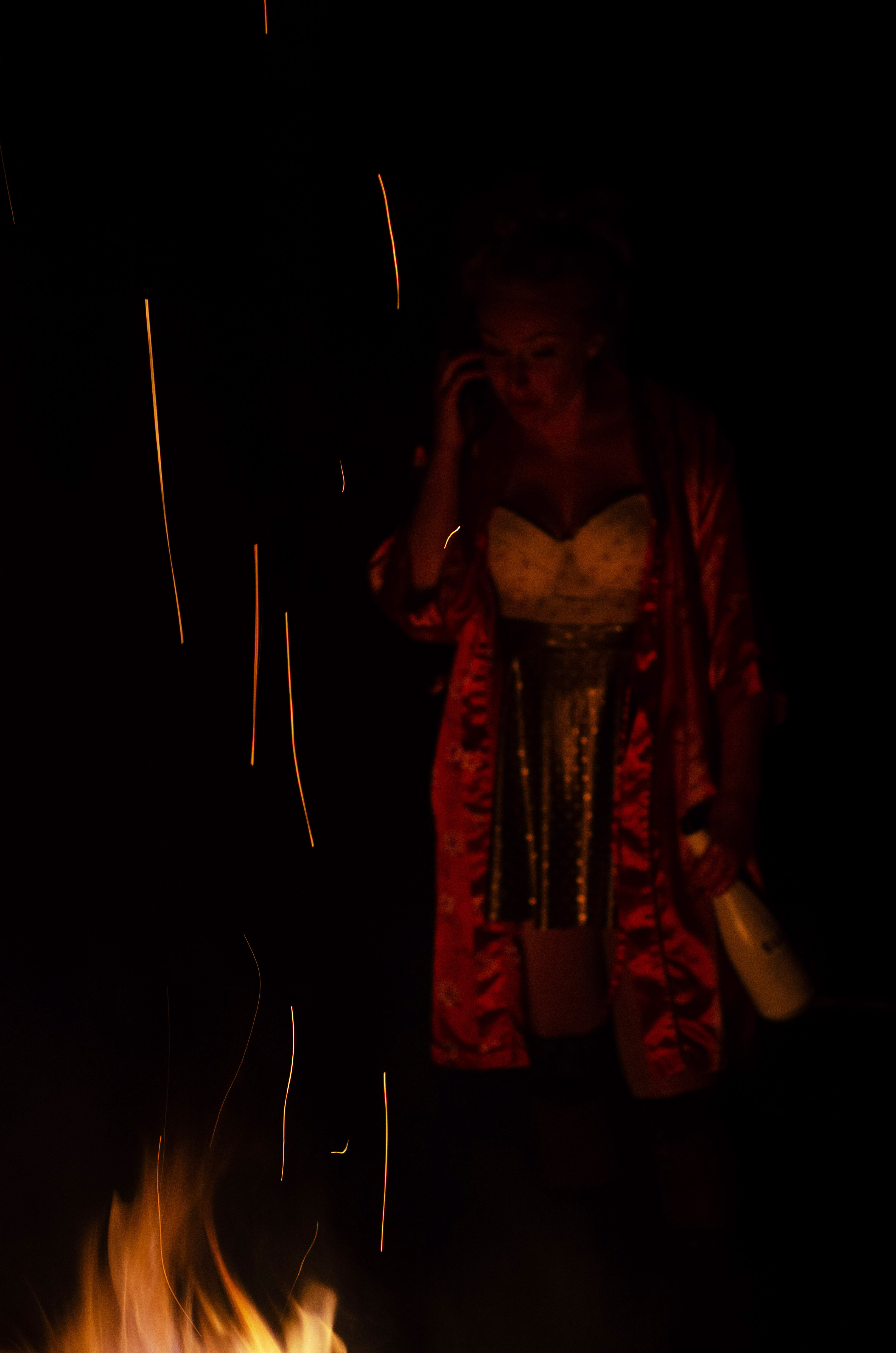 L’itinérance du spectacle reposait sur sa capacité à s’adapter aux différents terrains. Comme nous privilégions des lieux inhabituels, (auberge, parcs, bar, place publique) nous misions sur la simplicité de l’installation et l’autonomie en électricité. Quelques lanternes pour tamiser, notre boîte à musique de nuit et notre petite radio FM pour rythmer la soirée. Jouer partout, quand on veut. Dehors s’il fait beau, à l’intérieur si y faut. En deux temps, trois mouvements, l’espace se transformait, le texte s’adaptait, empruntait des éléments au réel, s’inspirait des alentours. C’est un spectacle en trompe-l’œil, pour voir le théâtre autrement.
