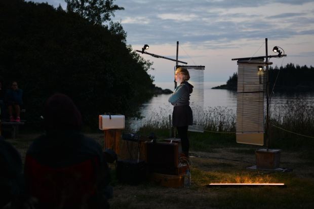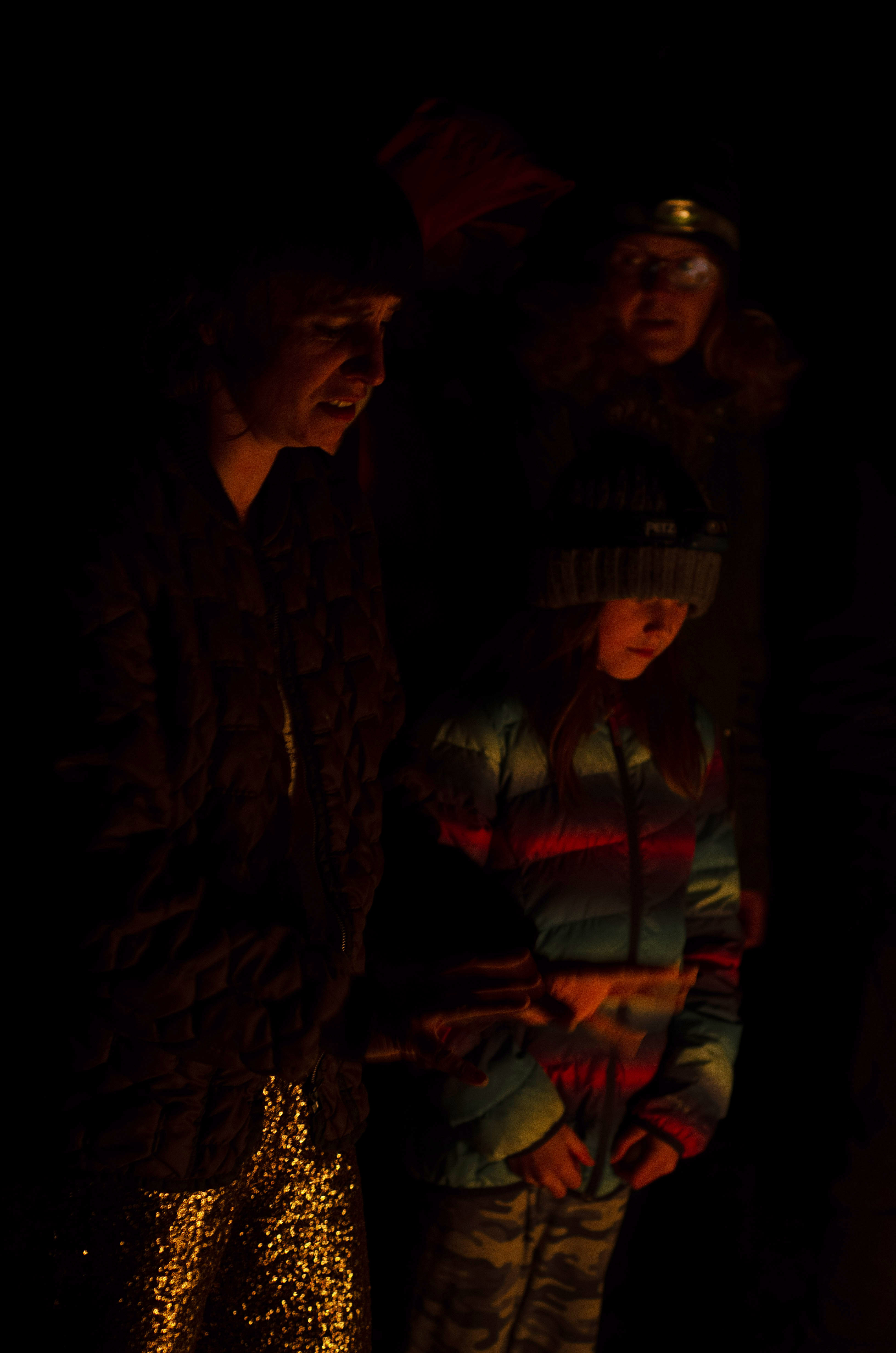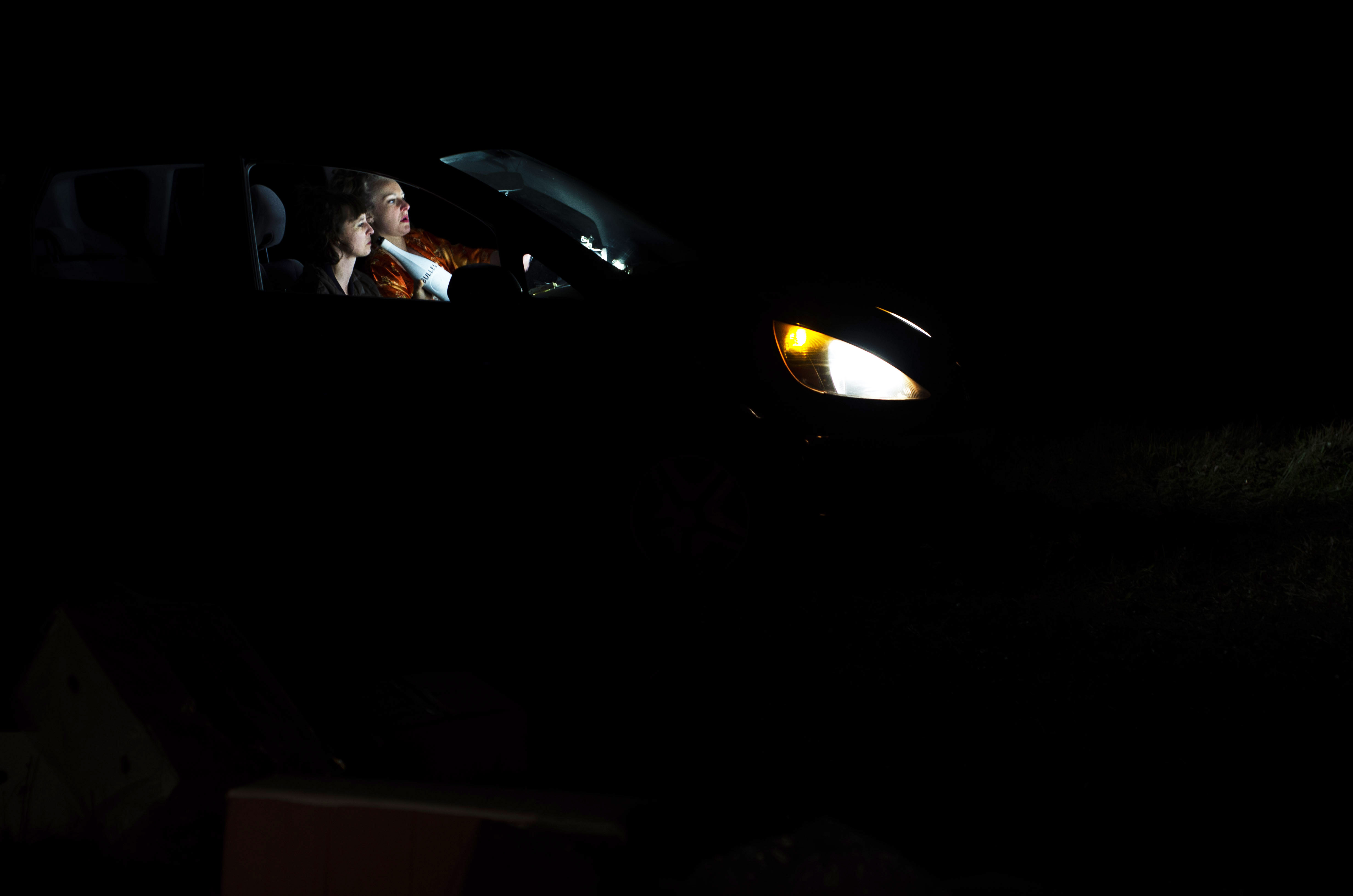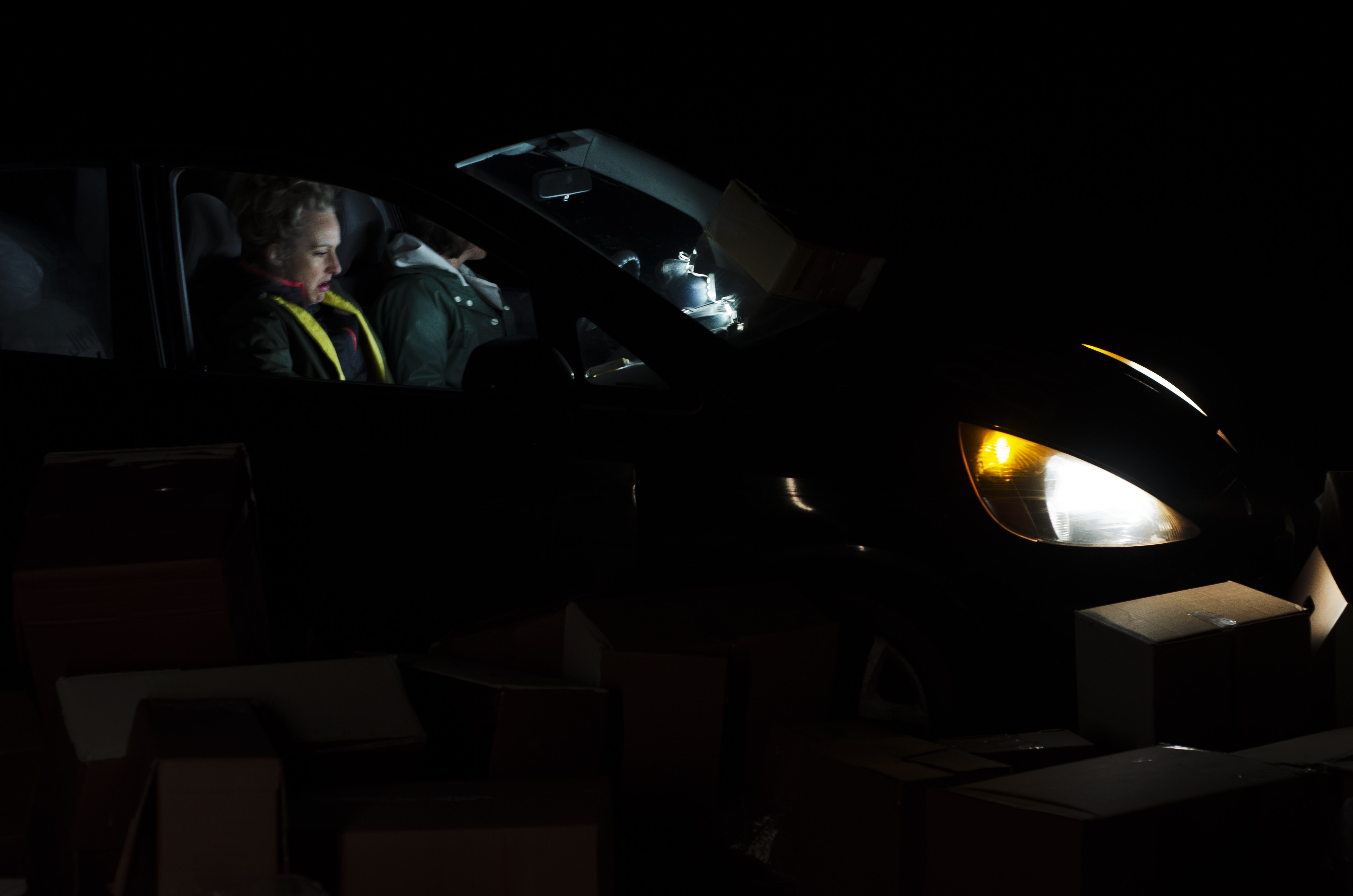 TROU NOIR, un spectacle tout terrain qui lève les yeux au ciel. Tout commence au coucher du soleil. Le minibus, la monture du Théâtre Témoin, jette l’ancre. L’équipe s’agite, l’installation s’érige, on fait place au théâtre!